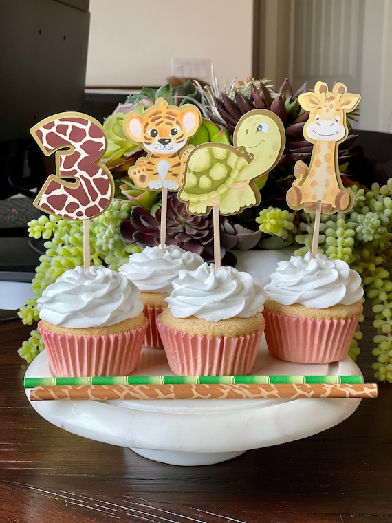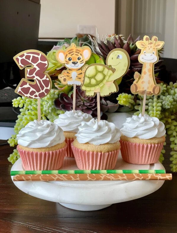 If you’re going simpler, add safari cupcake toppers with lions, elephants, and giraffes.