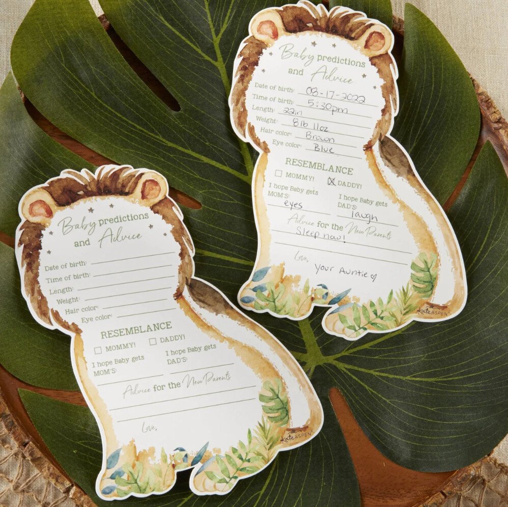 Create a photo booth with a leafy backdrop, animal props, safari hats and cute signs like “Mommy-to-be on Safari” or “Roar, Baby on Board.” Guests LOVE taking photos and this guarantees Instagram-worthy shots.
