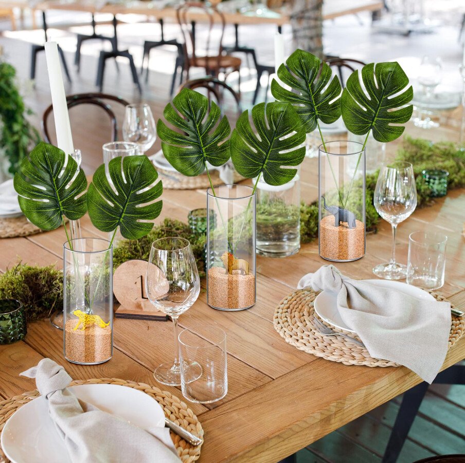 Animal prints are a must for this theme. Zebra-striped napkins, leopard-print table runners or giraffe-patterned placemats are some ideas. Pair them with neutral plates and gold accents to keep the look elegant rather than cheesy.