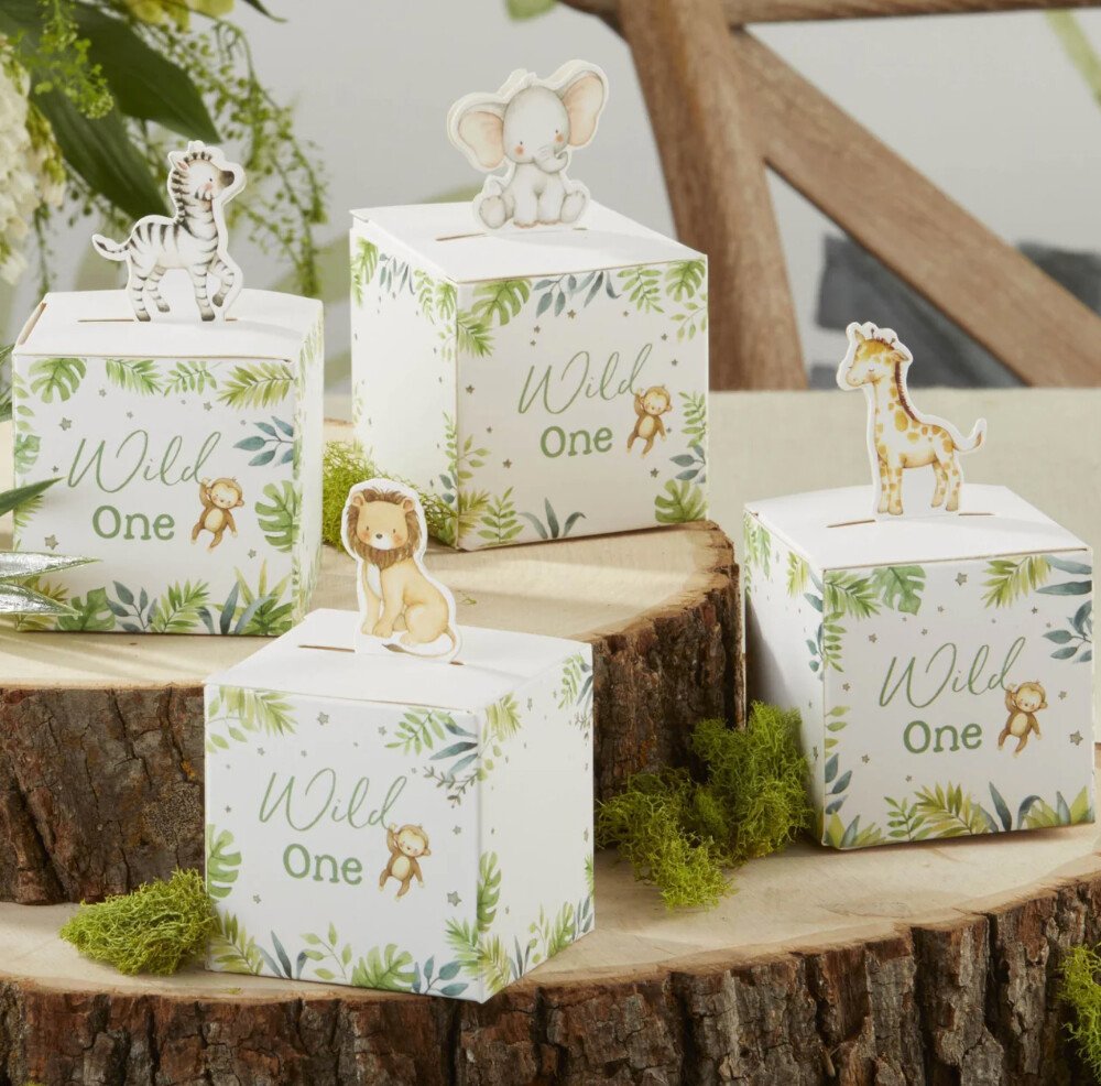 Party favors are a sweet way to thank guests for celebrating. Mini succulents, animal-shaped soaps, jungle-themed cookies or tiny plush animals can serve as great party favors. Add tags that say “Thank You for Celebrating Our Little Wild One.”
