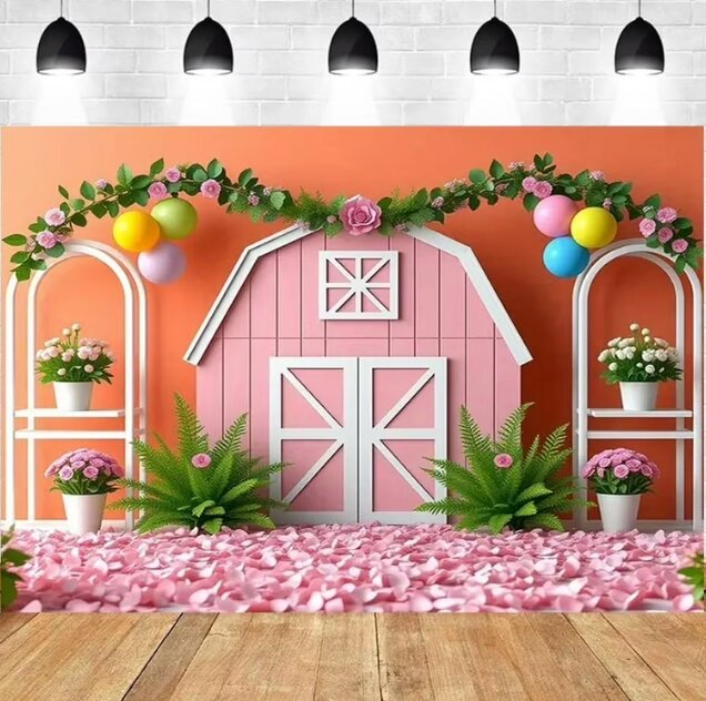 You can create a simple backdrop with hay bales, barn posters, or rustic wooden signs. Then add fun props like straw hats, bandanas, toy pitchforks and plush animals.