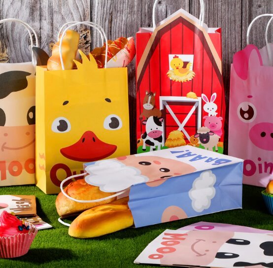 Use burlap bags or brown paper bags decorated with farm stickers to keep the rustic theme going.