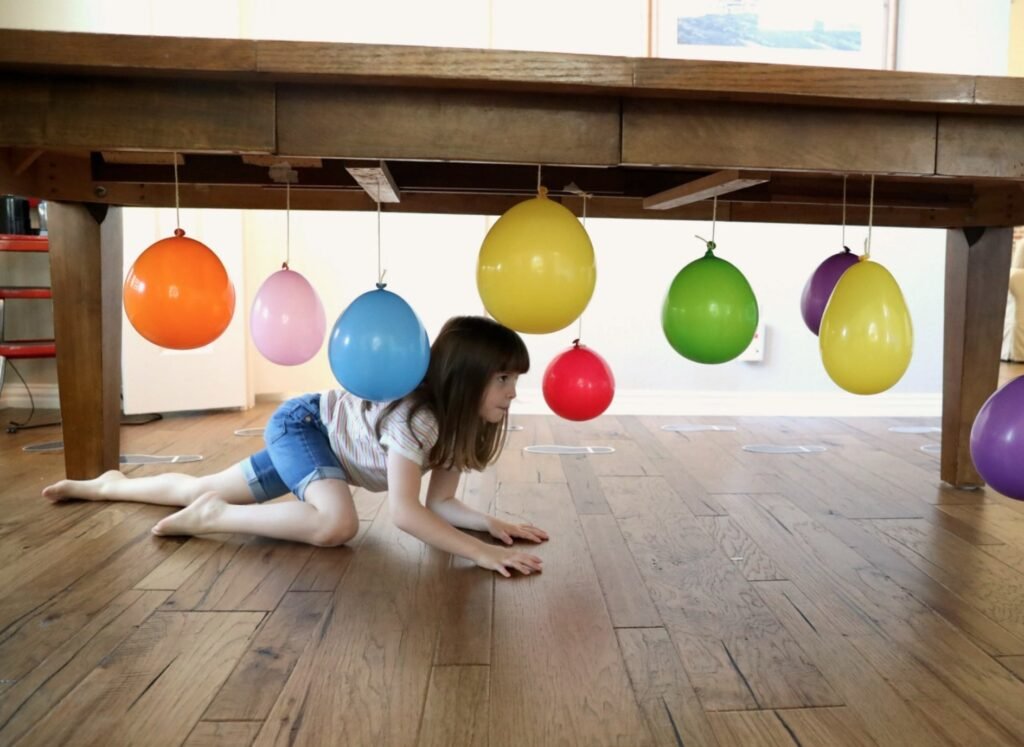 Balloon games are pure birthday magic and is one of the best indoor birthday party games for kids. Write fun challenges, jokes or dares on small pieces of paper and place them inside balloons before inflating them.