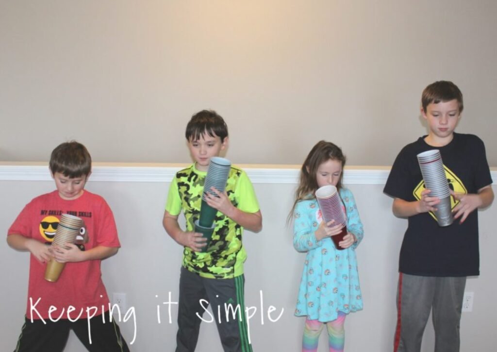 Divide kids into teams and give each team a stack of plastic cups. The goal is to stack them into a pyramid and then unstack them as quickly as possible.