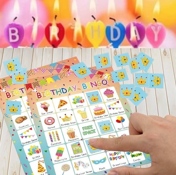 Create simple bingo cards with pictures instead of words for younger kids. Use party-themed images like cake, balloons, hats and gifts.