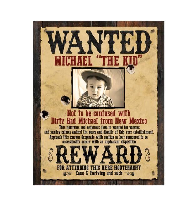 Create a playful “Wanted” poster featuring the baby’s name (if chosen) or something fun like “Wanted: Cute Little Cowboy, Arriving Soon!”