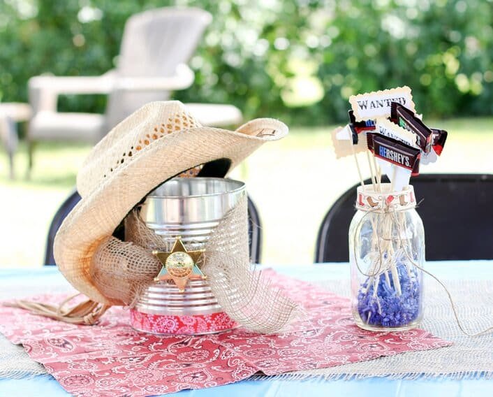Red bandanas and burlap are your best friends for this theme. Use bandanas as napkins, table runners, or even tied around mason jars. Burlap tablecloths instantly add that rustic ranch vibe.