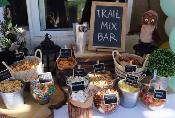A build-your-own trail mix station fits perfectly with the cowboy theme. Provide bowls of nuts, chocolate chips, dried fruit, and pretzels so guests can mix their own snack.