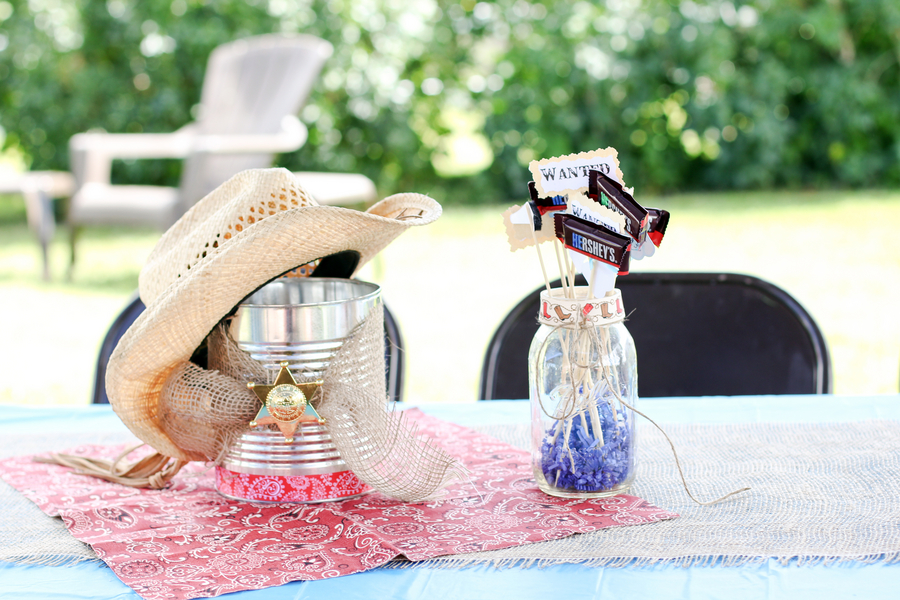 Red bandanas and burlap are your best friends for this theme. Use bandanas as napkins, table runners, or even tied around mason jars. Burlap tablecloths instantly add that rustic ranch vibe.