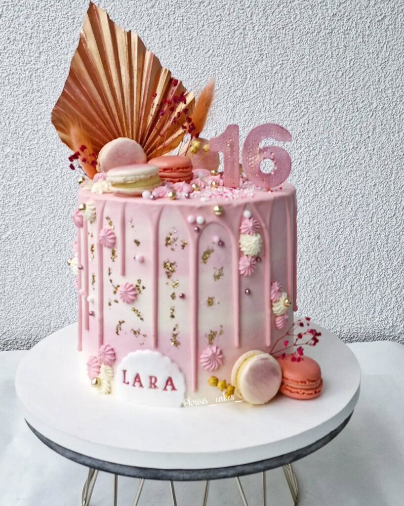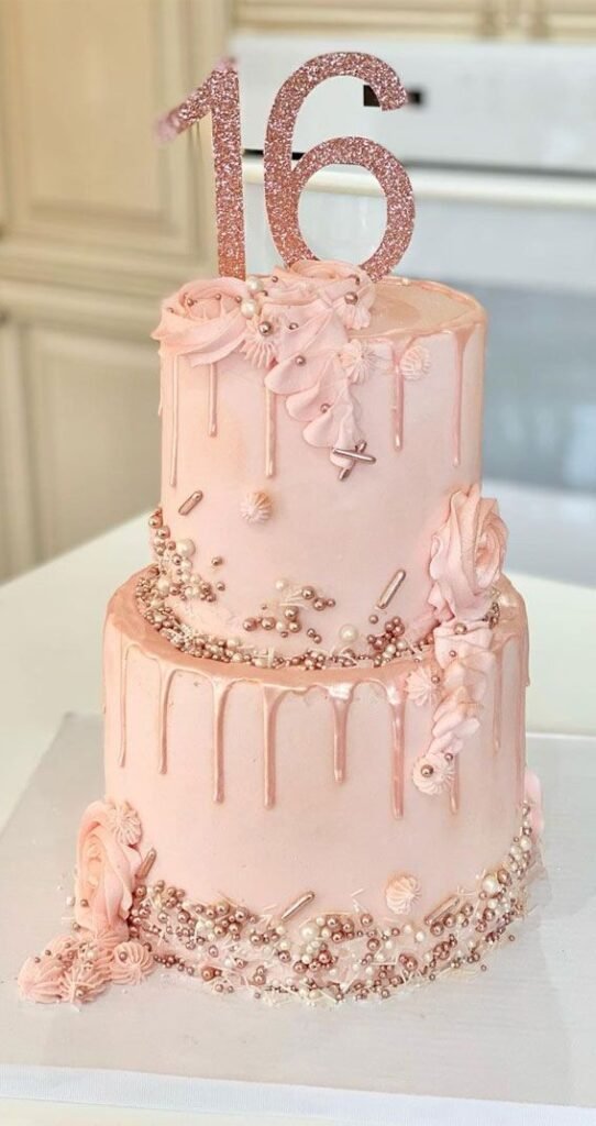 This elegant pink drip cake is a delicious and stylish highlight for any celebration. It’s a top choice among trendy 16 birthday party ideas.