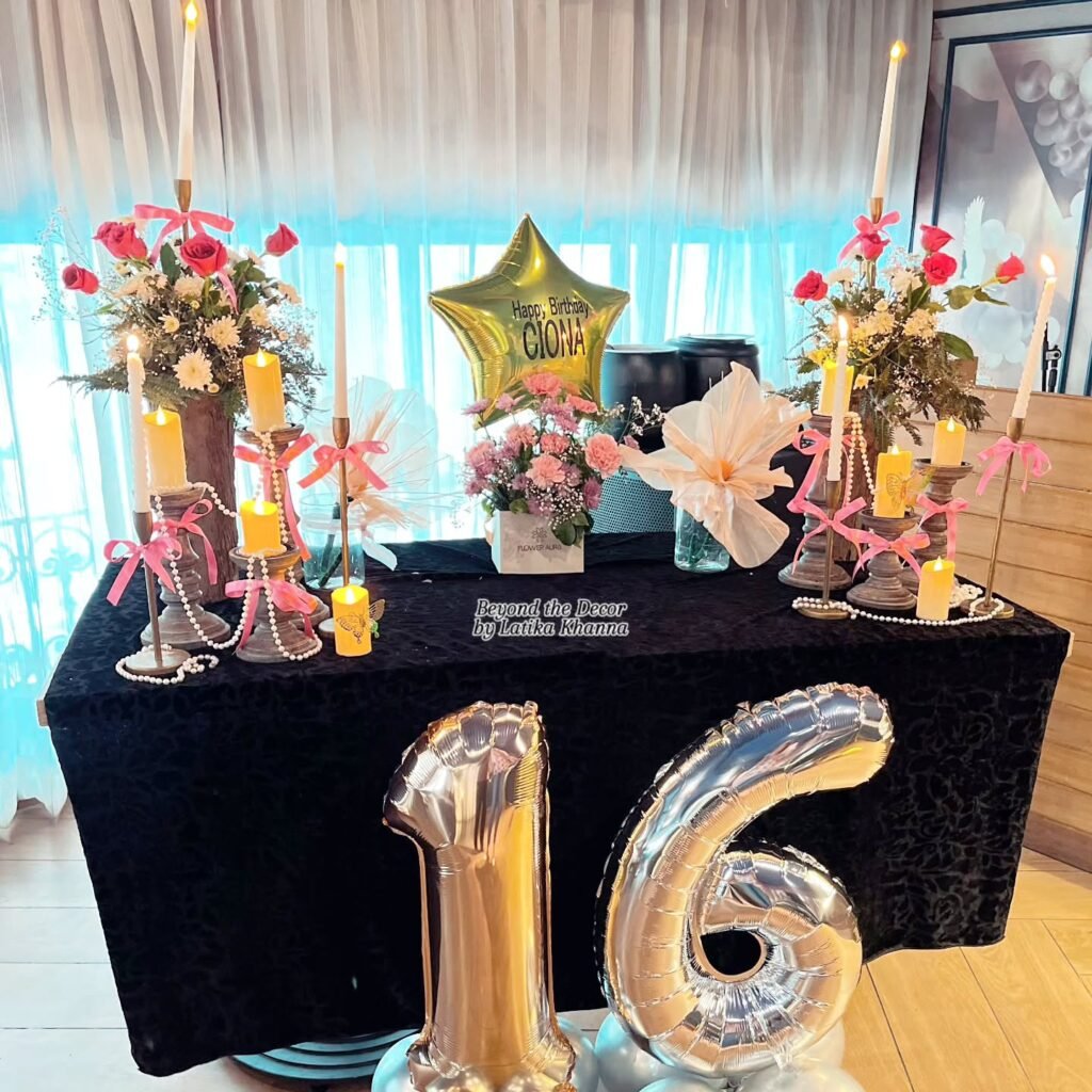 This setup proves that a sweet sixteen can be both glamorous and fun, offering a sophisticated backdrop for a special day.