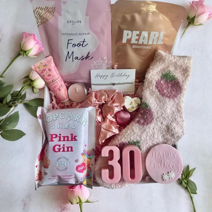 Delight someone special on their 30th birthday with a charming pink-themed gift box. This delightful collection features items designed for ultimate relaxation and enjoyment. Imagine cozy foot masks and a brightening pearl mask, promising a spa-like experience at home. This box truly makes for an excellent 30th birthday gift.