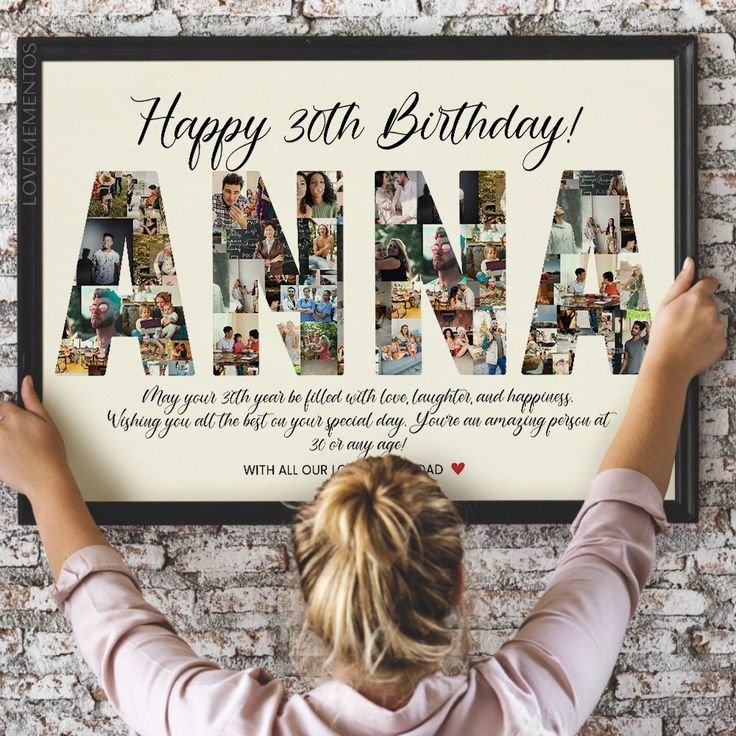 Mark a significant 30th birthday with a custom photo collage. This artistic piece transforms cherished memories into a stunning visual display. Imagine all her favorite faces and moments beautifully arranged, spelling out her name or a special message.