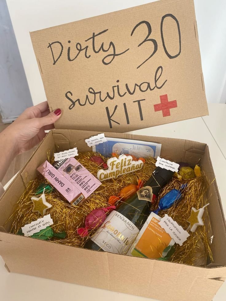 Present a fun and practical “Dirty 30 Survival Kit” as a fantastic 30th birthday gift! This cleverly themed box is packed with essentials to help navigate the exciting new decade. The handwritten label on the box immediately sets a playful tone. It’s a truly engaging concept among 30th birthday gift ideas.