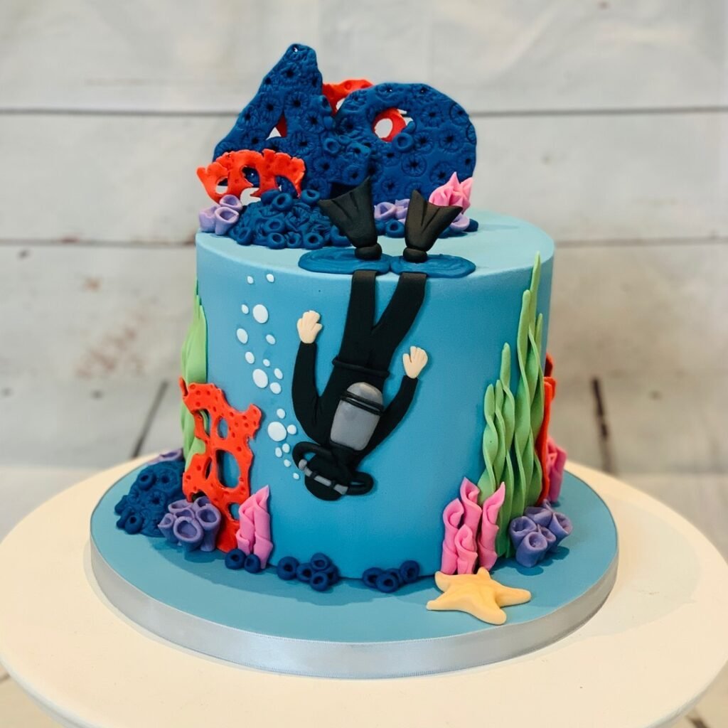 The playful sea creatures and detailed underwater landscape make this cake a conversation starter that celebrates both the birthday and a love for ocean exploration.