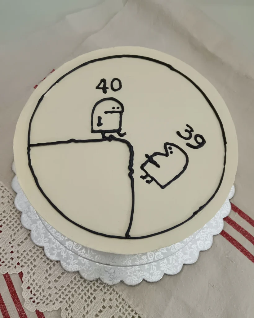 This stunning cake perfectly captures the duality of turning 40 – sophisticated yet playful.