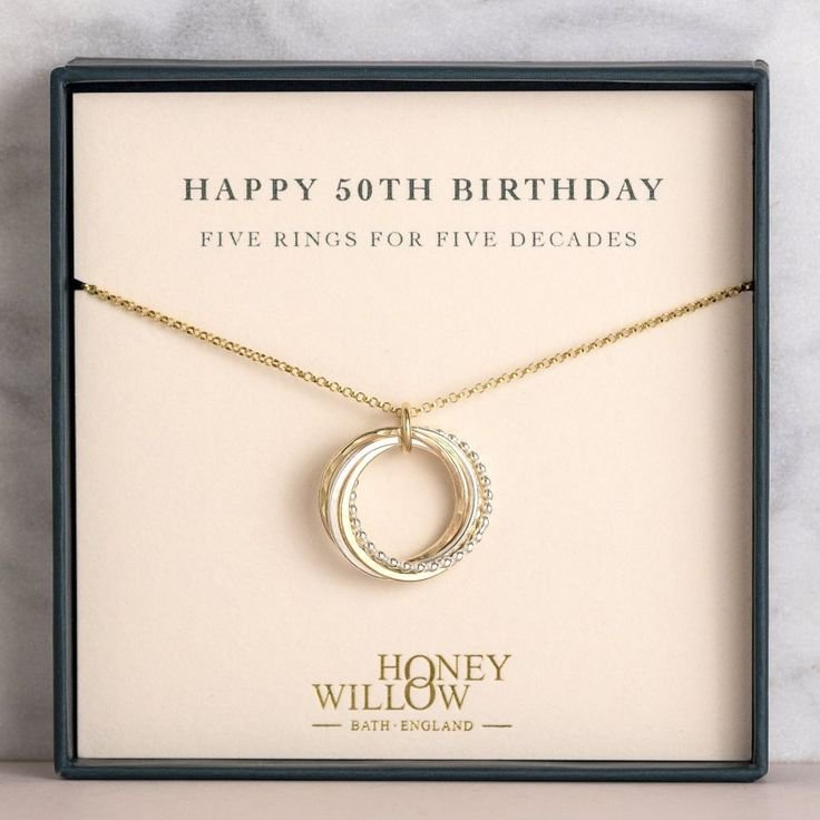 This elegant necklace is a wonderful 50th birthday gift idea, beautifully symbolizing five decades of life. Each interlocking ring represents a decade, coming together to form a timeless piece. It’s a thoughtful way to acknowledge a significant milestone.