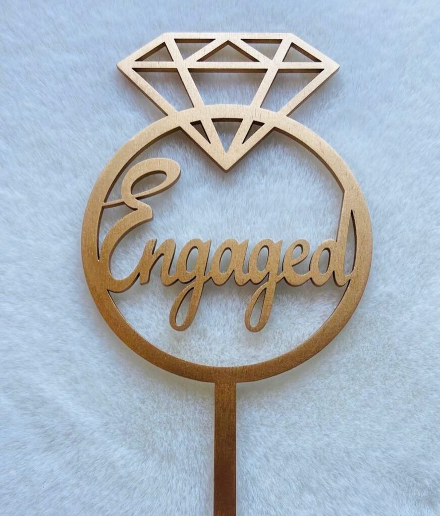 14. Diamond Ring Wooden Cake Topper