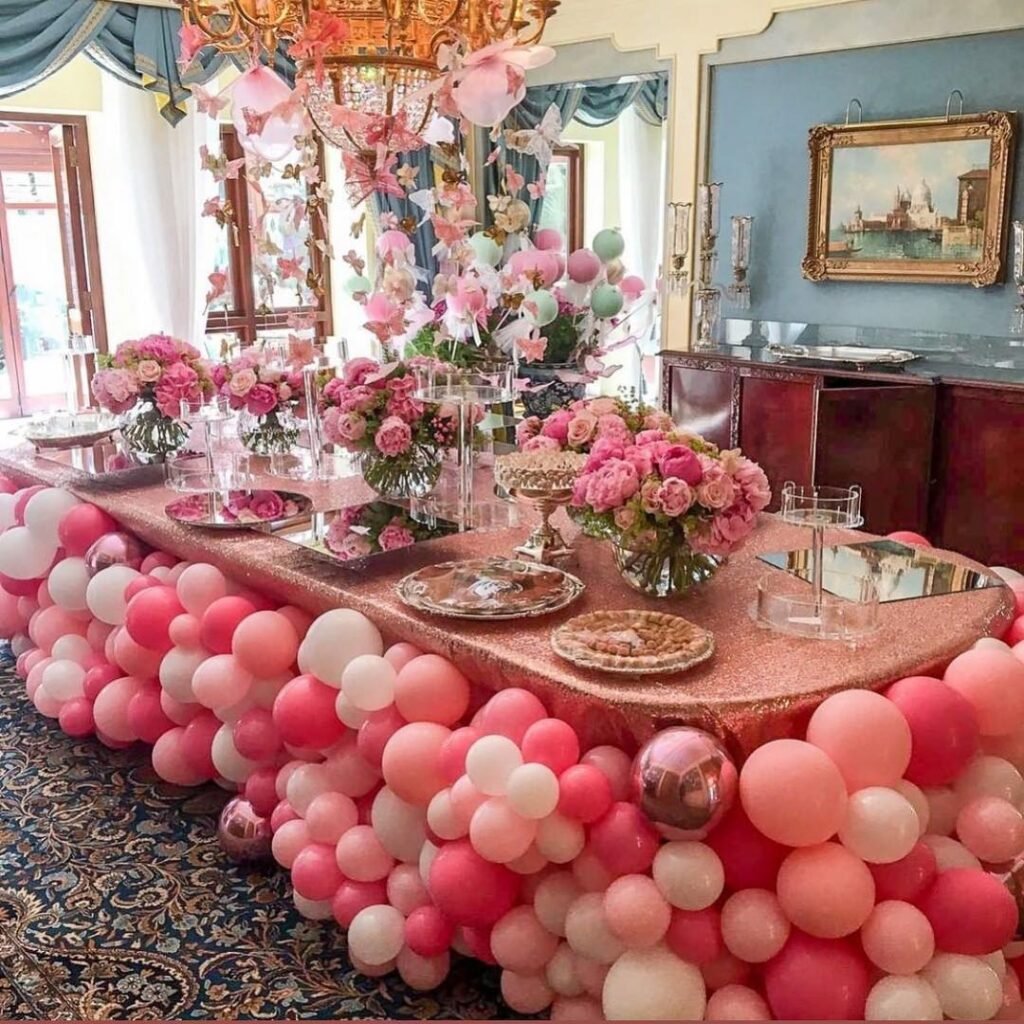 Elegance meets celebration in this stunning rose gold and pink balloon arrangement.