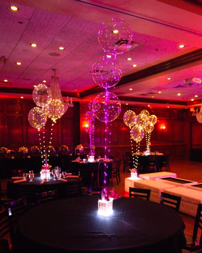 When the room lights dim, these balloon arrangements become the stars of the show, casting beautiful patterns and creating an almost nightclub-like atmosphere.