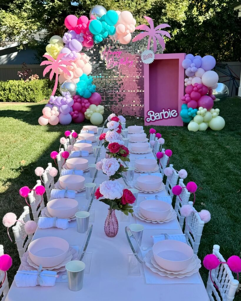 The whole setup feels modern and chic. This is a wonderful way to celebrate a special birthday, blending classic Barbie style with a contemporary, open-air feel for a magical day.