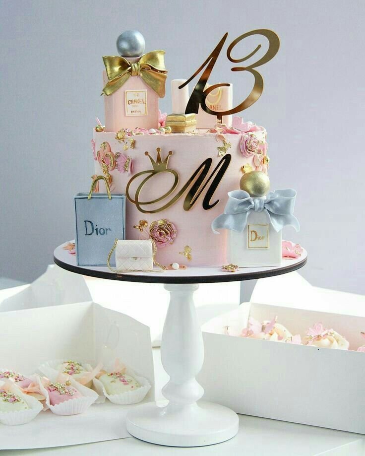 This elegant cake is a fashionista’s fantasy come to life. Adorned with edible Chanel and Dior bags, it is a luxurious tribute to high-end style. It is the perfect cake for a brand-conscious teen.