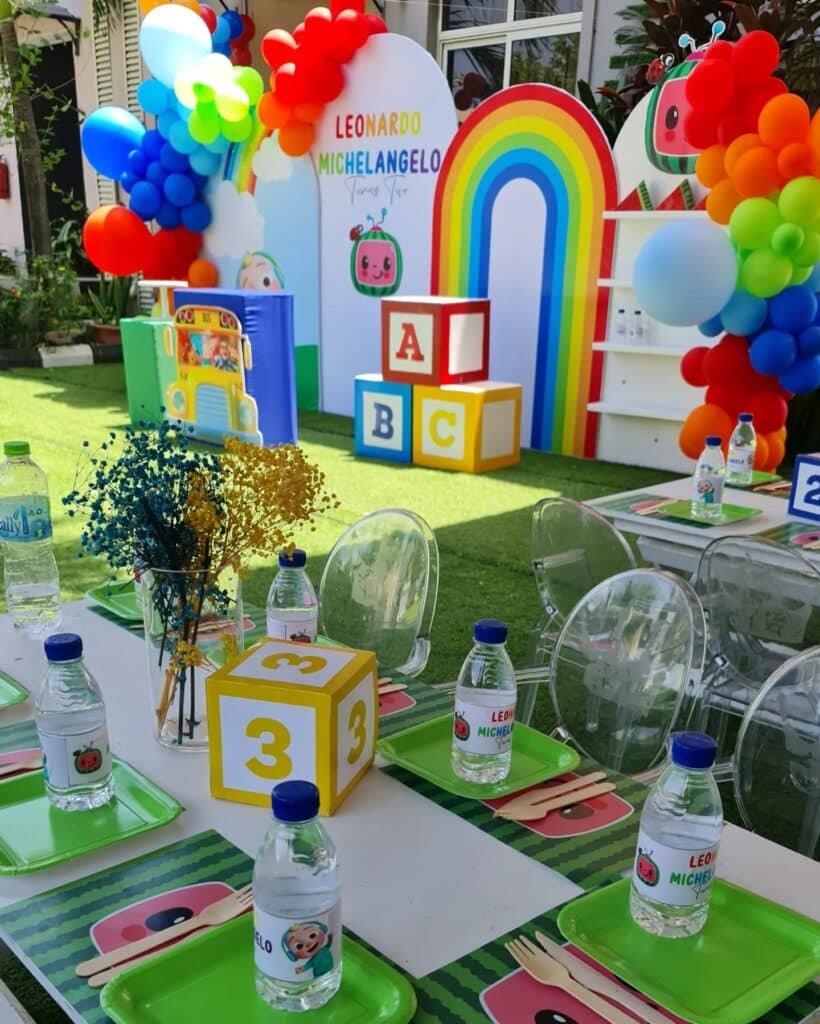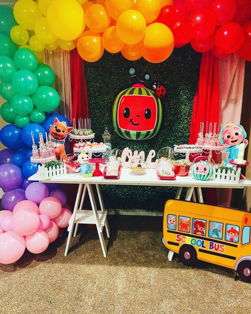 A Cocomelon party is all about bright colors, cheerful songs, and fun-filled activities that bring the beloved characters to life.
