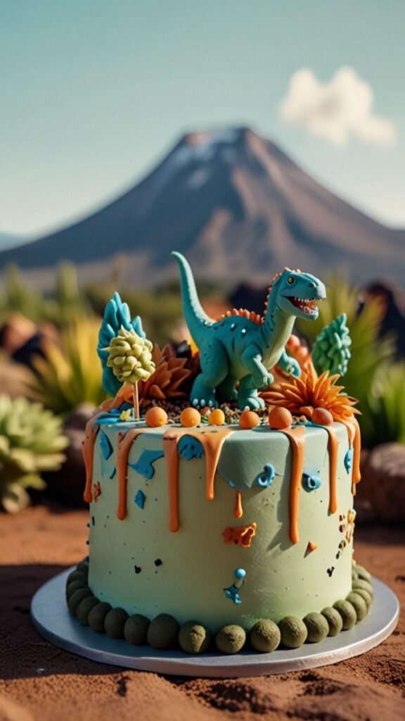 This dinosaur birthday cake is a truly immersive experience, combining natural textures and playful elements. It’s a wonderful choice for a child who loves dinosaurs, making it a standout dinosaur birthday cake that promises a memorable celebration.
