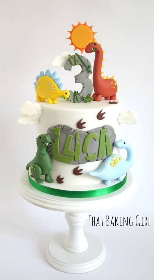 8. A Gentle Dino Party Cake