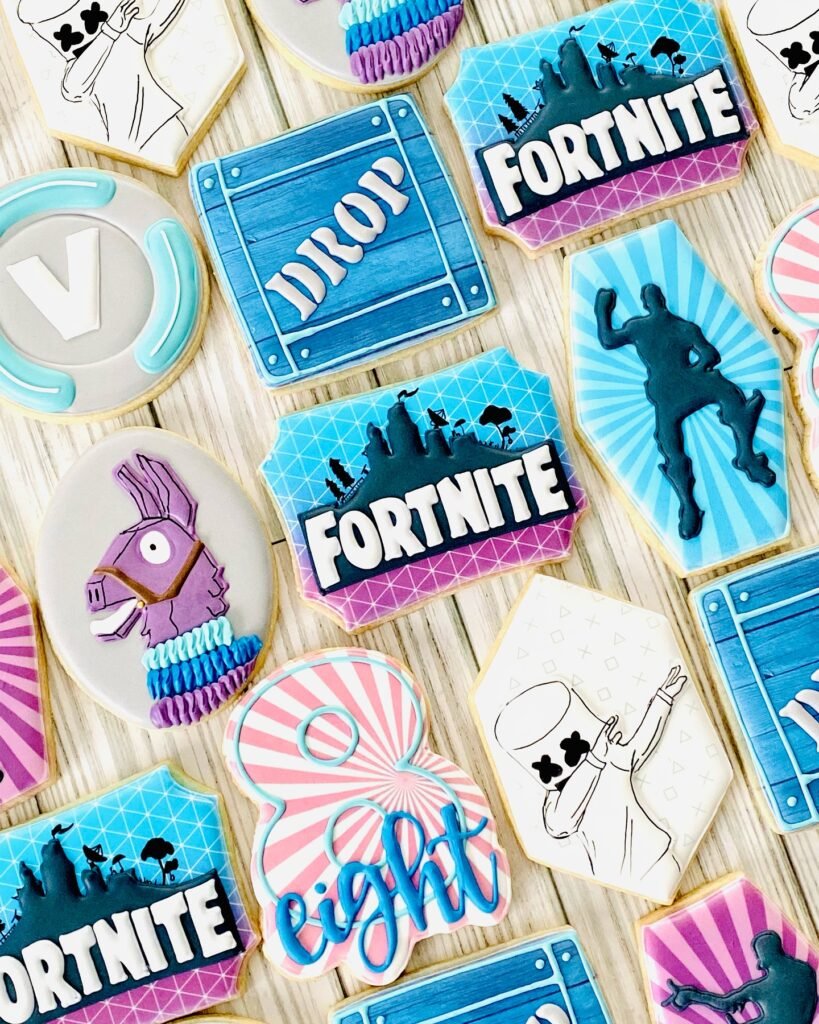 These decorated cookies are a creative and delicious addition to any party. They are an excellent example of Fortnite birthday party ideas that are both practical and exciting for everyone.