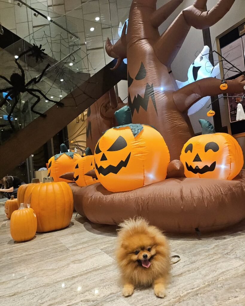 This setup is great for a large space, like a party hall or front lawn. The sheer scale of the pumpkins and tree creates an immersive atmosphere for guests. These whimsical and spooky elements are a memorable way to celebrate a special birthday.