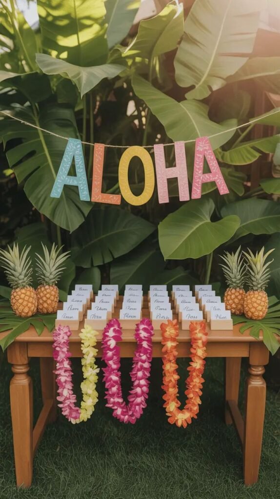 Set up a stylish and organized welcome with these charming Aloha Place Cards, excellent for Hawaiian theme party ideas. Guests easily find their spots with this system. It adds structure to your event beautifully.