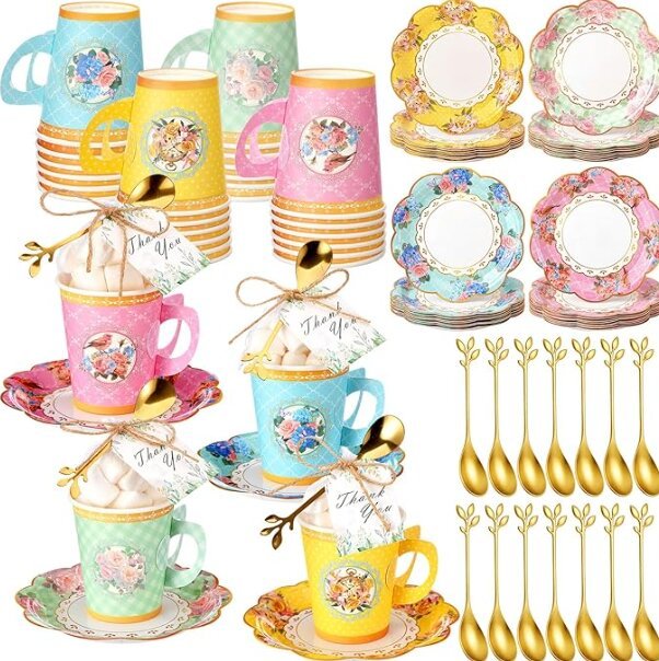 Cover the table with a light tablecloth or pastel fabric and then, add simple touches like paper doilies, faux flowers, or a small centerpiece. Mismatched teacups and plates actually add to the charm, making everything feel playful instead of formal.