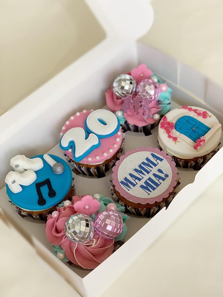 These cupcakes are like little masterpieces that bring all the Mamma Mia magic right to your dessert table. Each one tells a different part of the story – from disco balls that’ll make you think of “Dancing Queen” to those adorable blue doors reminiscent of Greek architecture.