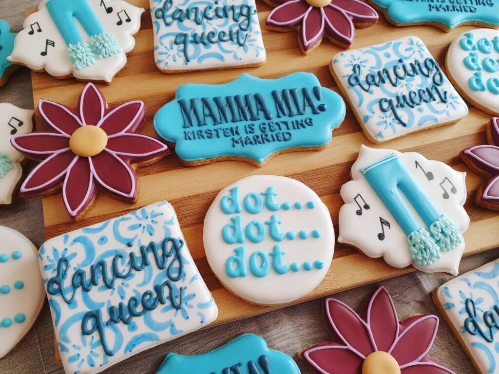 These decorated cookies are absolutely adorable and so creative! Each one tells part of the Mamma Mia story – from musical notes to “Dancing Queen” script to those iconic “dot dot dot” lyrics.