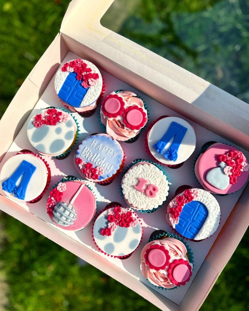 Those polka dot designs mixed in add such a playful touch, while the “Happy Birthday” message keeps things celebratory. The pink sunglasses cupcakes are totally giving off those fun summer vacation vibes.