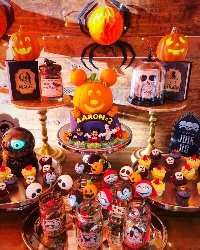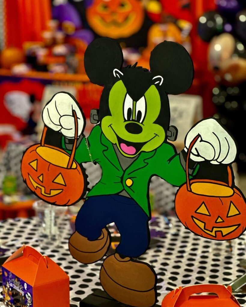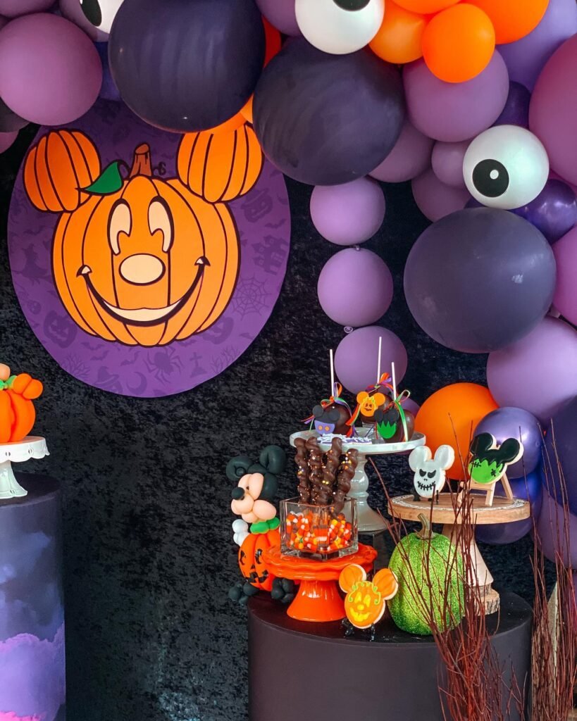 This creative display shows a more mature and thematic approach to a celebration. It’s a great inspiration for anyone looking for elevated and imaginative mickey’s halloween party ideas.