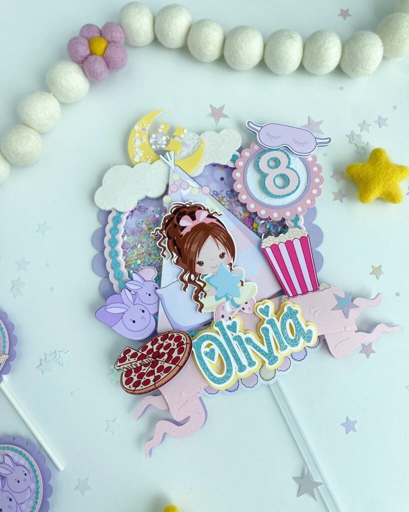 Nothing says “sweet dreams” like adorable cake toppers that capture the magic of childhood sleepovers. These whimsical decorations feature cute cartoon characters, fluffy clouds, and glittery stars that sparkle under party lights.
