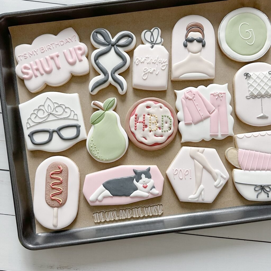 These detailed sugar cookies showcase the artistry possible in pajama party treats. Each cookie tells a story through intricate designs featuring sleep masks, pajamas, crowns, and other sleepover essentials.