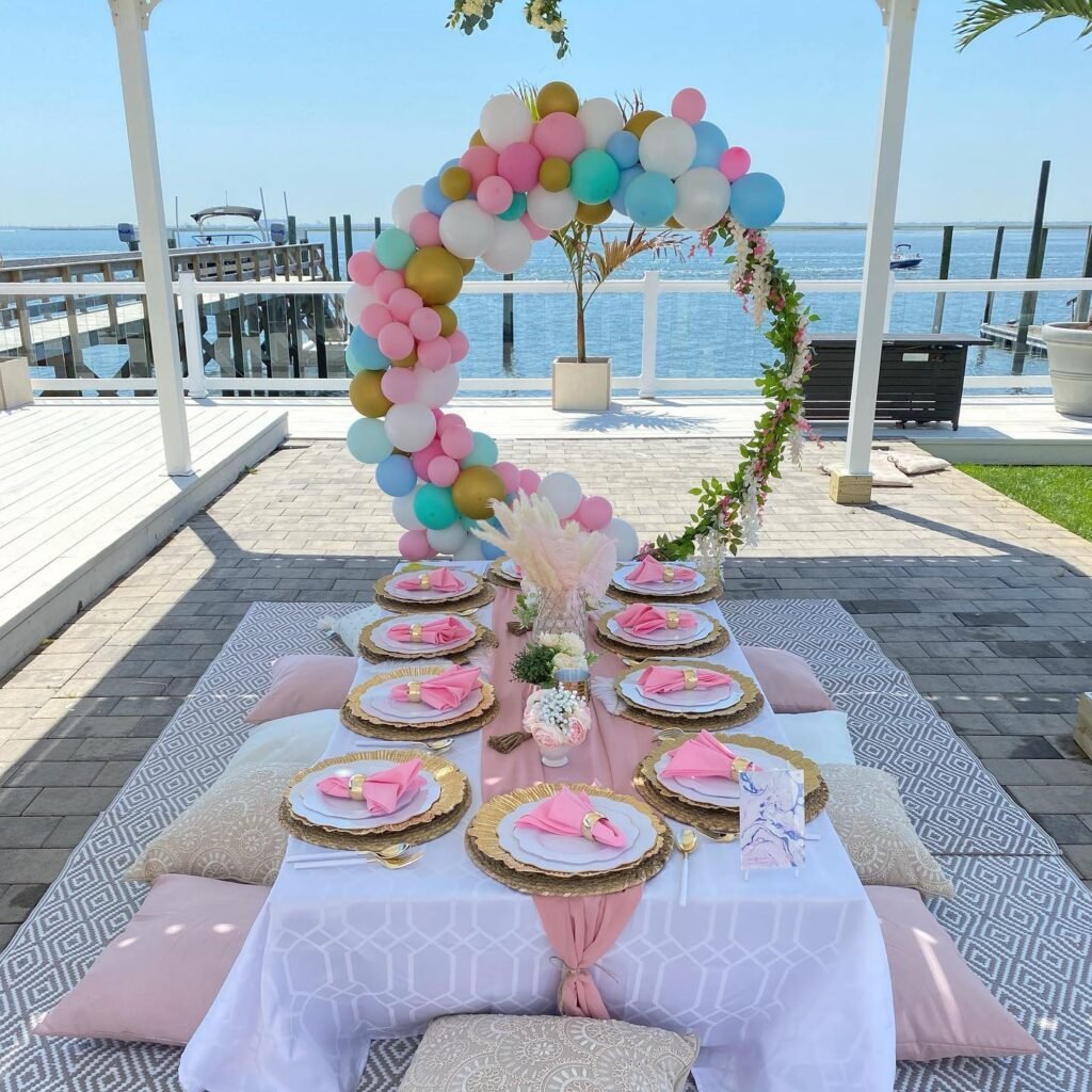 Dreamy pink decorations and waterside views create the ultimate feminine birthday celebration!