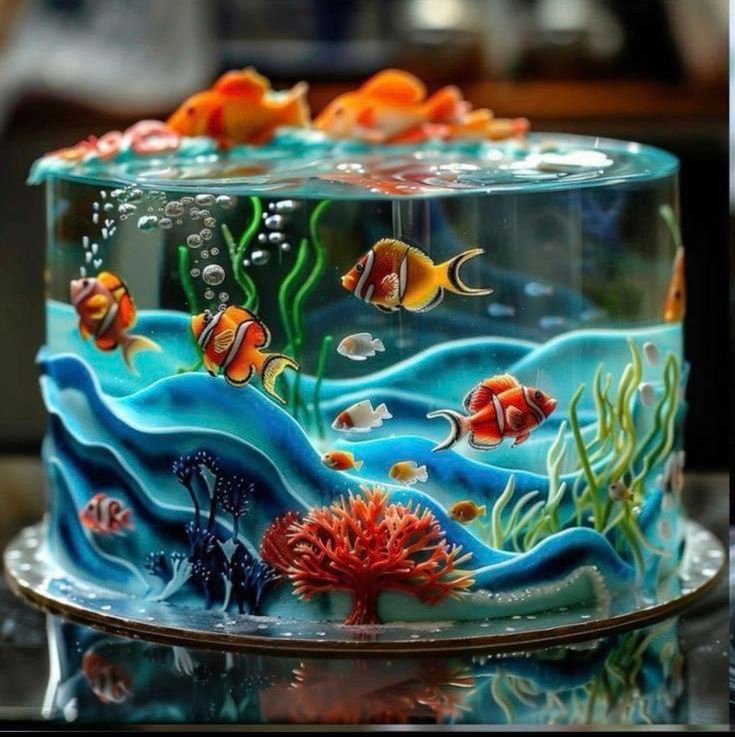 A tiny orange fish swims amidst the details, adding a touch of playful movement. This cake is a fantastic choice for anyone who loves the ocean, making it a captivating and engaging pool party birthday cake idea that will surely enchant young and old alike.