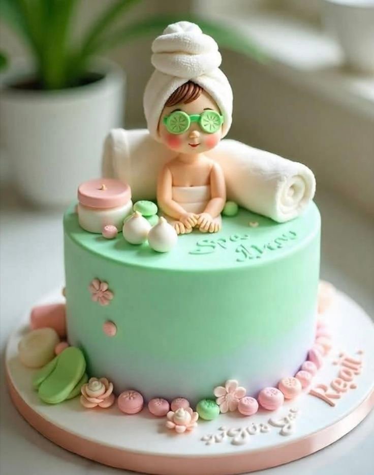 This vibrant cake captures all the joy of a pool party birthday cake idea. A bright pink base sets a playful tone, instantly bringing smiles to everyone’s faces. The top shimmers like a cool blue pool, ready for some delicious fun.