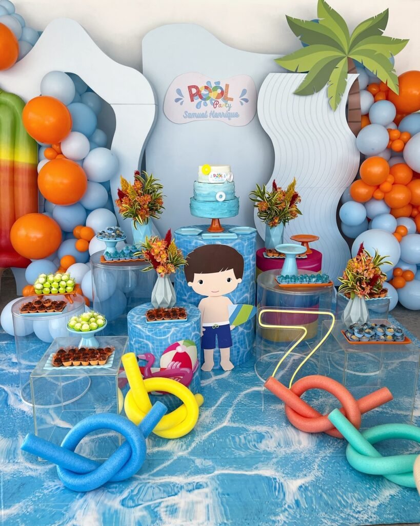It’s the ultimate setup for a kids’ pool party. The visual appeal and engaging details promise a memorable and delightful celebration for everyone attending.