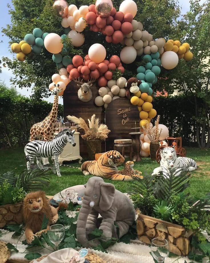 This sophisticated setup is perfect for welcoming guests to a memorable safari birthday party. It combines playful elements with tasteful decor, creating an atmosphere that is both fun and chic. It is a wonderful way to commemorate a special milestone in a truly wild style.