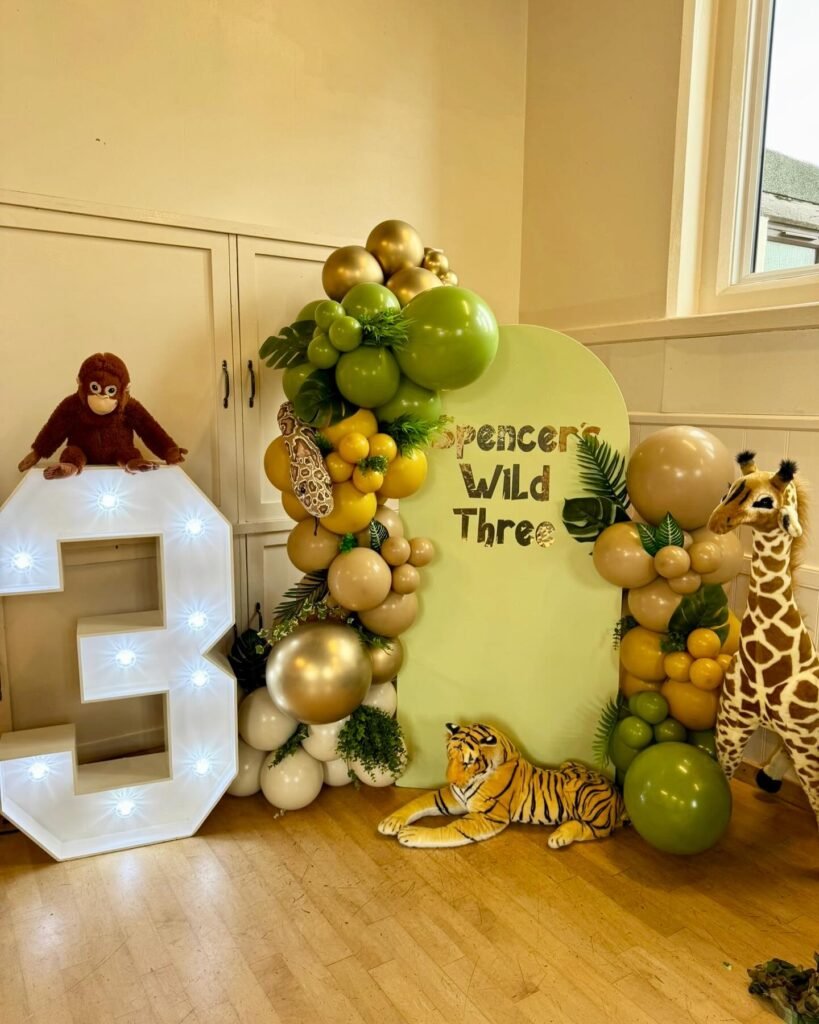 This balloon tower is not only a fantastic decoration but also a wonderful photo prop, perfectly embodying the spirit of a safari birthday party. It brings together fun and elegance, making Albie’s special milestone truly memorable. Guests will be enchanted by this creative and festive display.