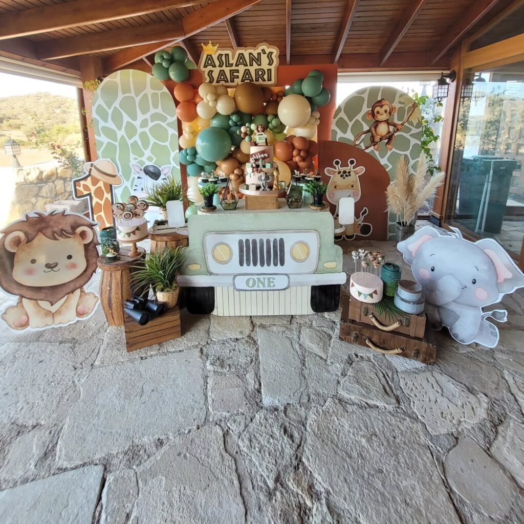 Such creative details elevate a safari birthday party, leaving a lasting impression on guests. It serves as a charming keepsake, reminding attendees of the fun and adventure shared at Jaber’s special celebration. This little vehicle adds so much character to the event.