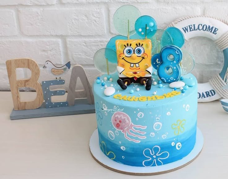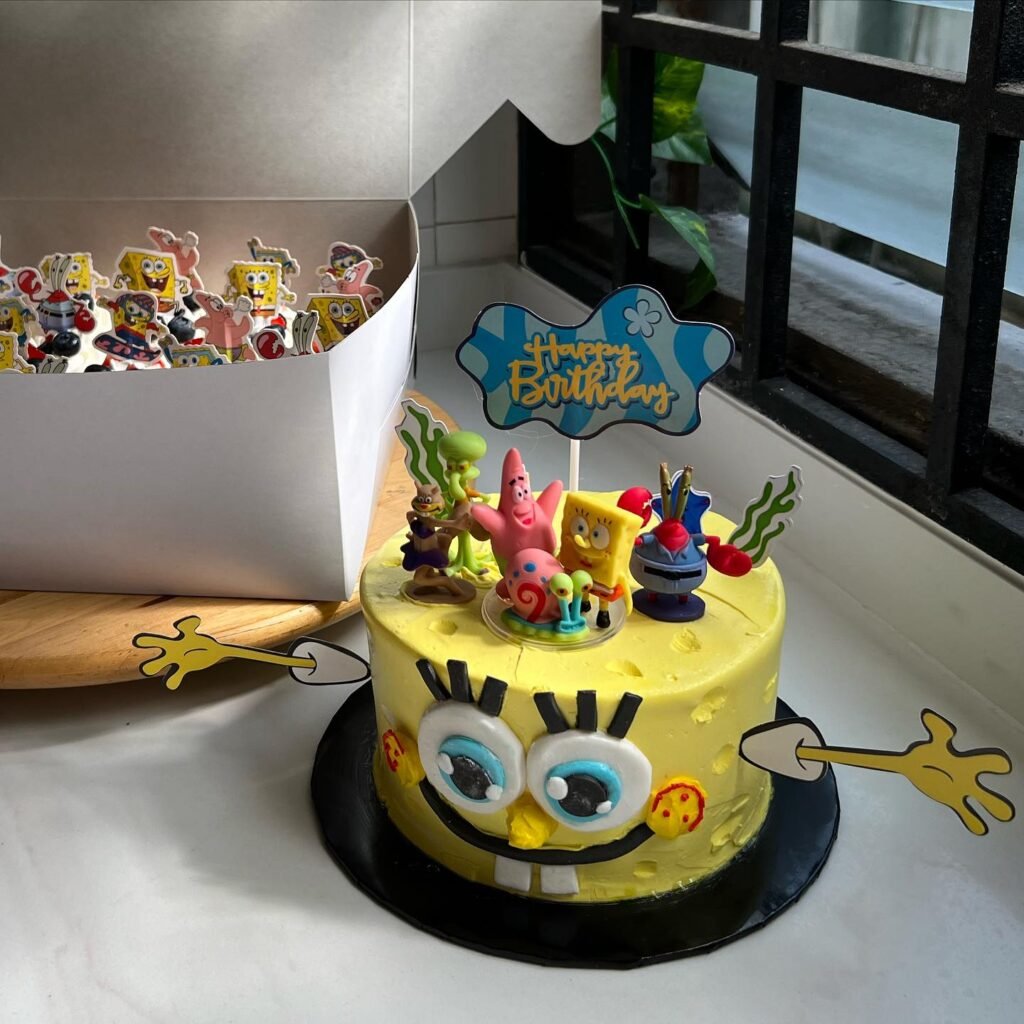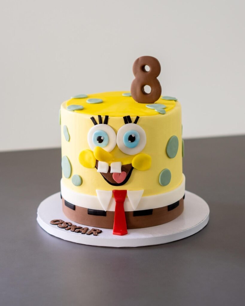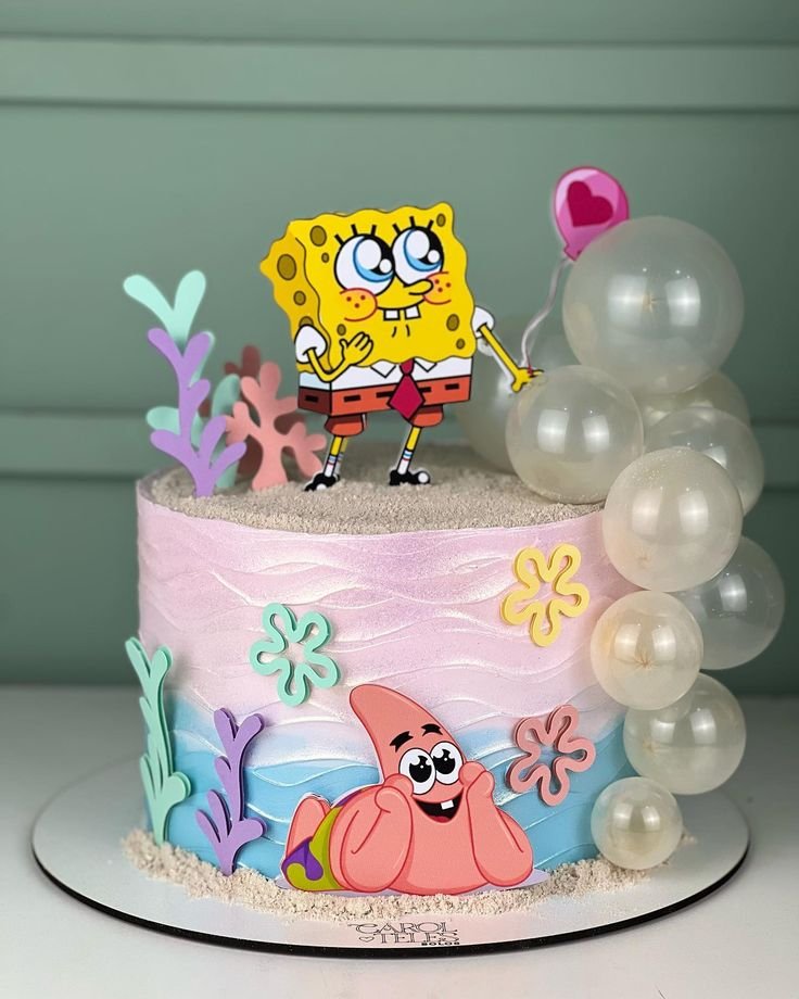 A SpongeBob-themed cake can instantly light up the party with bright colors, playful designs, and everyone’s favorite characters like Patrick, Squidward, and even Gary the snail.