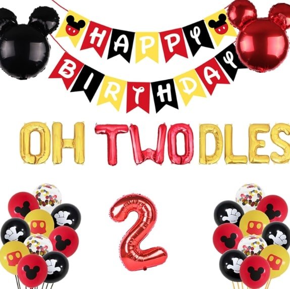 This vibrant, classic setup features beloved Mickey and Minnie for great twins birthday party themes. Bold red, black, and white colors create a visually stunning backdrop for Eesa and Aisha.