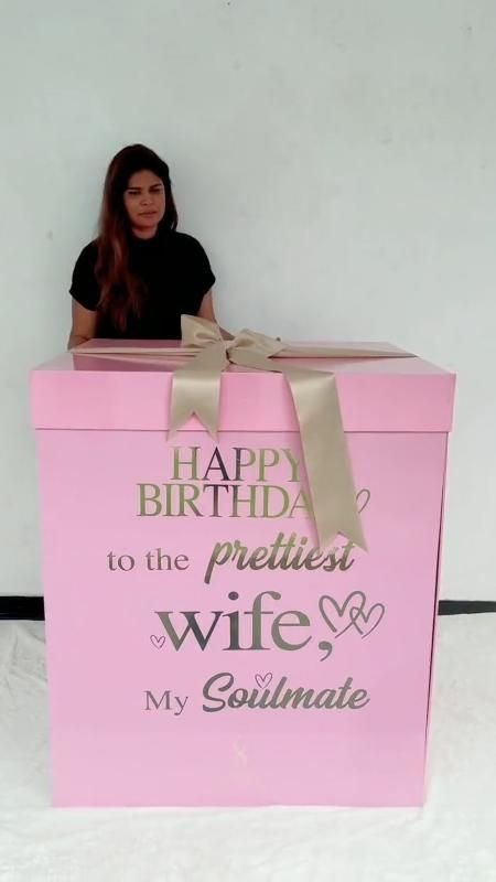 Imagine the sheer delight on your wife’s face when she sees this enormous, personalized pink birthday gift box! It’s designed to make a grand statement, letting her know she’s truly cherished. This impressive box instantly sets a celebratory mood.