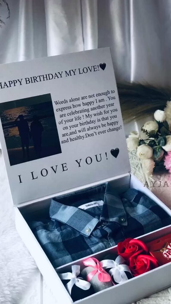 Surprise your wife with a charming pink-themed birthday gift box, designed to bring a smile to her face. The elegant packaging, adorned with a delicate ribbon, creates an immediate sense of anticipation and celebration. It’s a lovely presentation for any wife birthday gift idea.